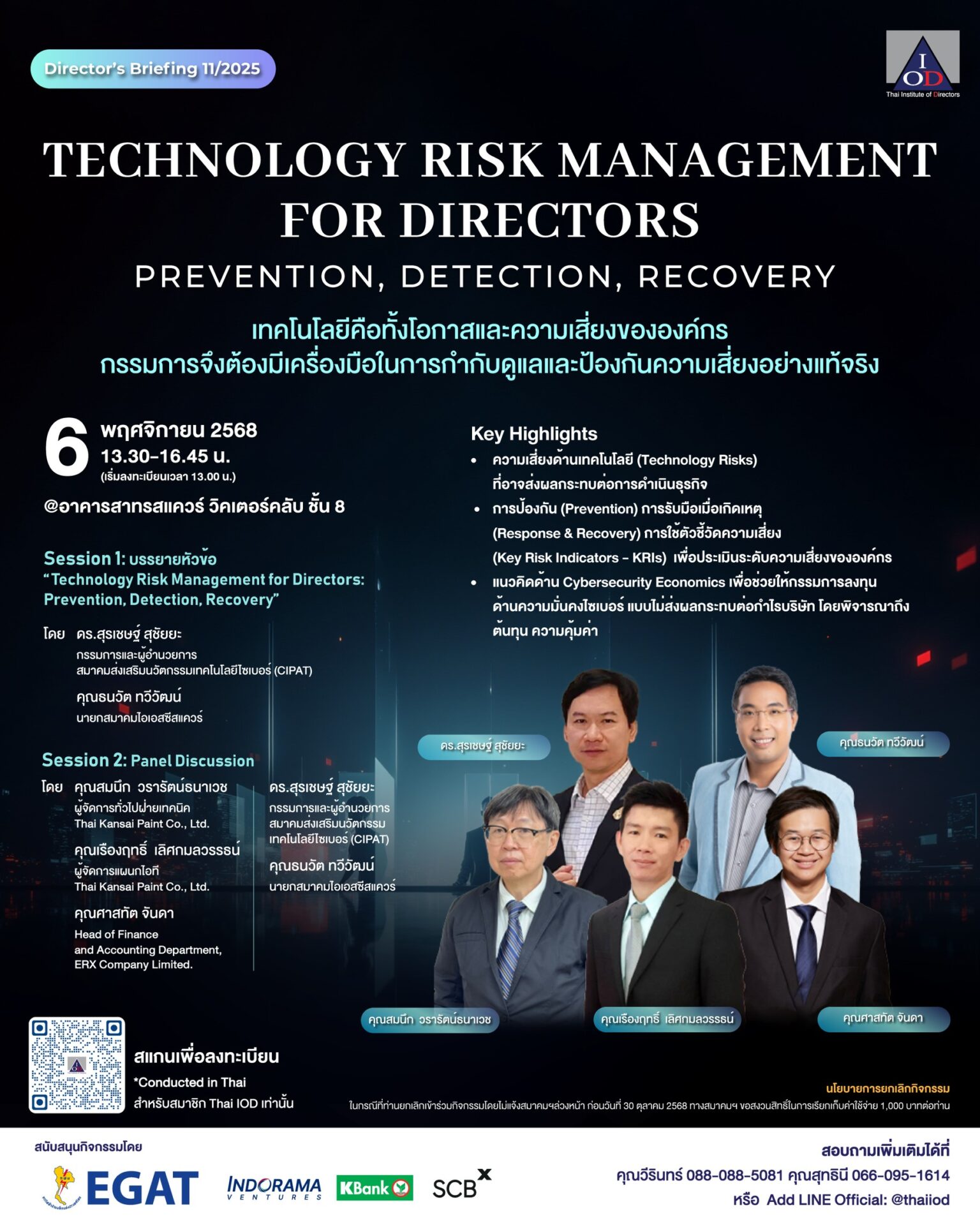 #IODThailand #TechnologyRisk #Cybersecurity #IOD #ThaiIOD #CorporateGovernance #DirectorsBriefing